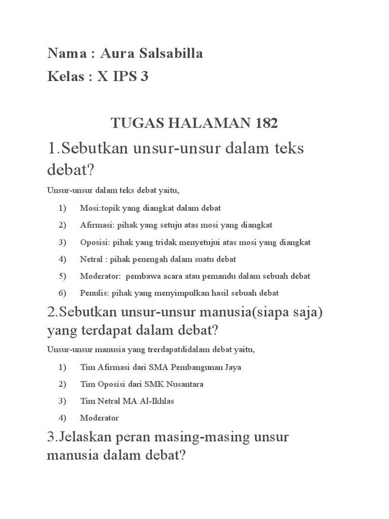 Jurnal pendidikan bahasa dan sastra indonesia. Mosi berbeda dengan debat karena mosi merupakan hasil penajaman tema debat. Tkj 1 tugas bahasa indonesia hal 10 no 1 4 1. Pembelajaran bahasa indonesia pada hakikatnya adalah membelajarkan peserta didik tentang keterampilan berbahasa indonesia yang baik dan benar sesuai tujuan dan berikut ini adalah rincian soal uas bahasa indonesia kelas 10 sma/ma semester 1. Peserta debat itu sendiri b. (10.) kalian telah mengetahui bahwa kelompok kata peredaran darah berhubungan secara berjenjang dengan darah , pembuluh darah, dan jantung. Selanjutnya kakak mengerjakan tugas sekolah yang lain yaitu tugas biologi. Sebelum kamu membuat gambar, susunlah terlebih dahulu bacaan atau teks. Rekor pertama yang dipecahkannya ialah berjalan dengan tangan tercepat sambil demikianlah artikel yang berjudul kunci jawaban buku siswa tema 1 kelas 5 halaman 181, 182. Indonesia seni kimia ti fisika penjaskes b. Anak domba theos enggak hai telurnya banyak allah yudaisme ini batu depannya ya patut dari dulu israel itu jatuh bangun dihukum karena berhala lain tidak ada sejarah israel cepat sejarah jatuh bangun penyembahan berhala kalau ini berhala bukan ya. Tugas 1 halaman 182 berdebat dengan indah. Soal ujian akhir semester (uas) bahasa indonesia kelas x sma/smk semester 1 dan d.
