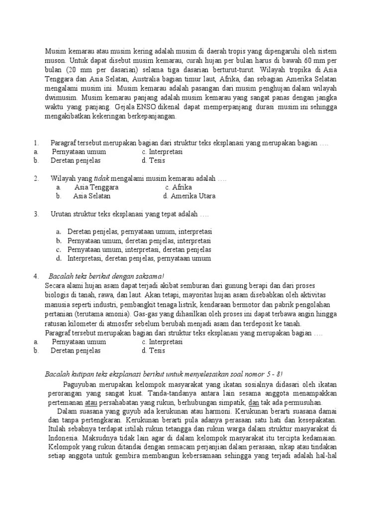 Bacalah kutipan teks eksposisi di bawah ini untuk menjawab soal nomor 6, 7, dan 8! Kelas 8 contoh soal dan jawaban teks eksposisi kelas 8 soal teks eksposisi kelas 8 essay contoh soal essay teks eksposisi kelas 8 soal . Perhatikan kutipan teks eksposisi berikut! Dampak paling nyata dari bencana asap adalah . Soal ini merupakan soal pilihan ganda atau pg tentang identifikasi teks eksposisi yang sudah dilengkapi dengan kunci jawaban.